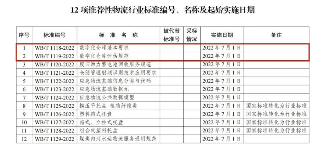 近日,中華人民共和國(guó)國(guó)家發(fā)展和改革委員會(huì)印發(fā)了2022年第6號(hào)公告,批準(zhǔn)發(fā)布12項(xiàng)推薦性物流行業(yè)標(biāo)準(zhǔn)。其中,由廈門象嶼股份有限公司參與編寫(xiě)的《數(shù)字化倉(cāng)庫(kù)基本要求》(WB/T 1118-2022)《數(shù)字化倉(cāng)庫(kù)評(píng)估規(guī)范》(WB/T 1119-2022)2項(xiàng)推薦性物流行業(yè)標(biāo)準(zhǔn)于2022年7月1日正式實(shí)施。